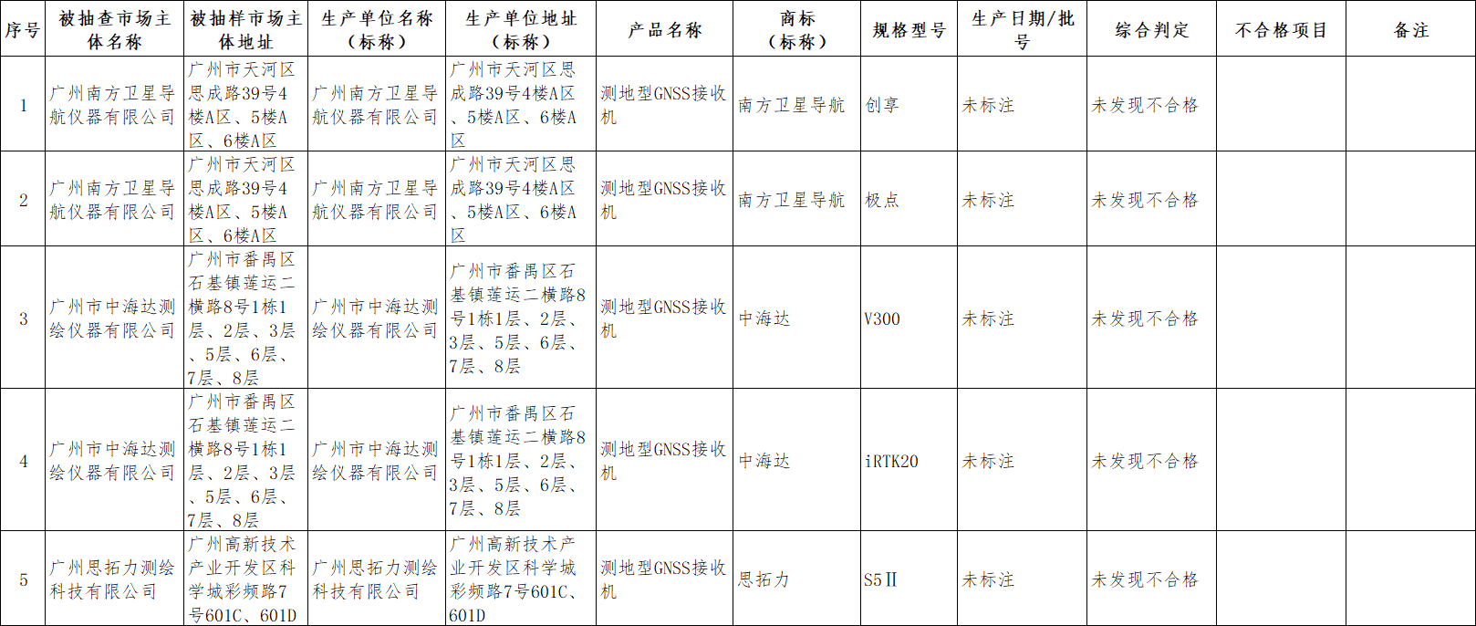 附件:2023年廣州市測地型GNSS接收機產品質量監督抽查結果