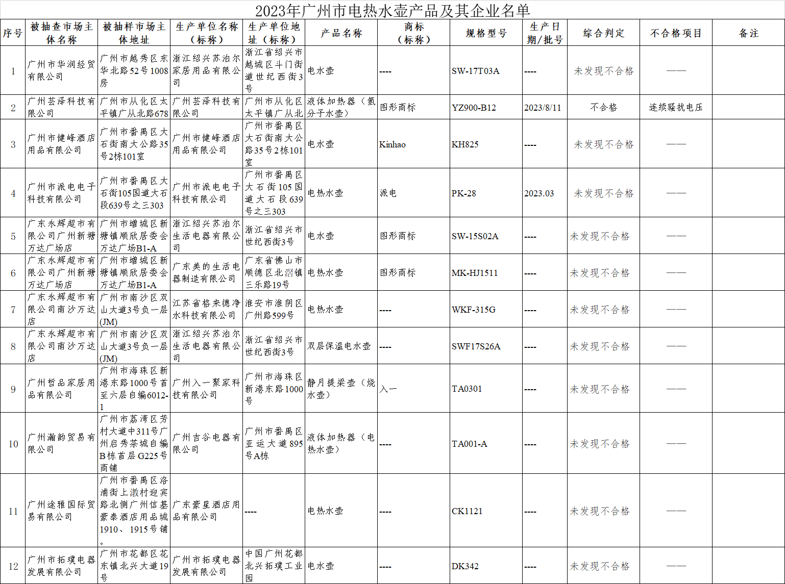 2023年第3季度,廣州市市場監督管理局對電熱水壺產品質量進行了監督抽查,共抽查了12批次樣品,經檢驗,有1批次產品不符合標準要求。