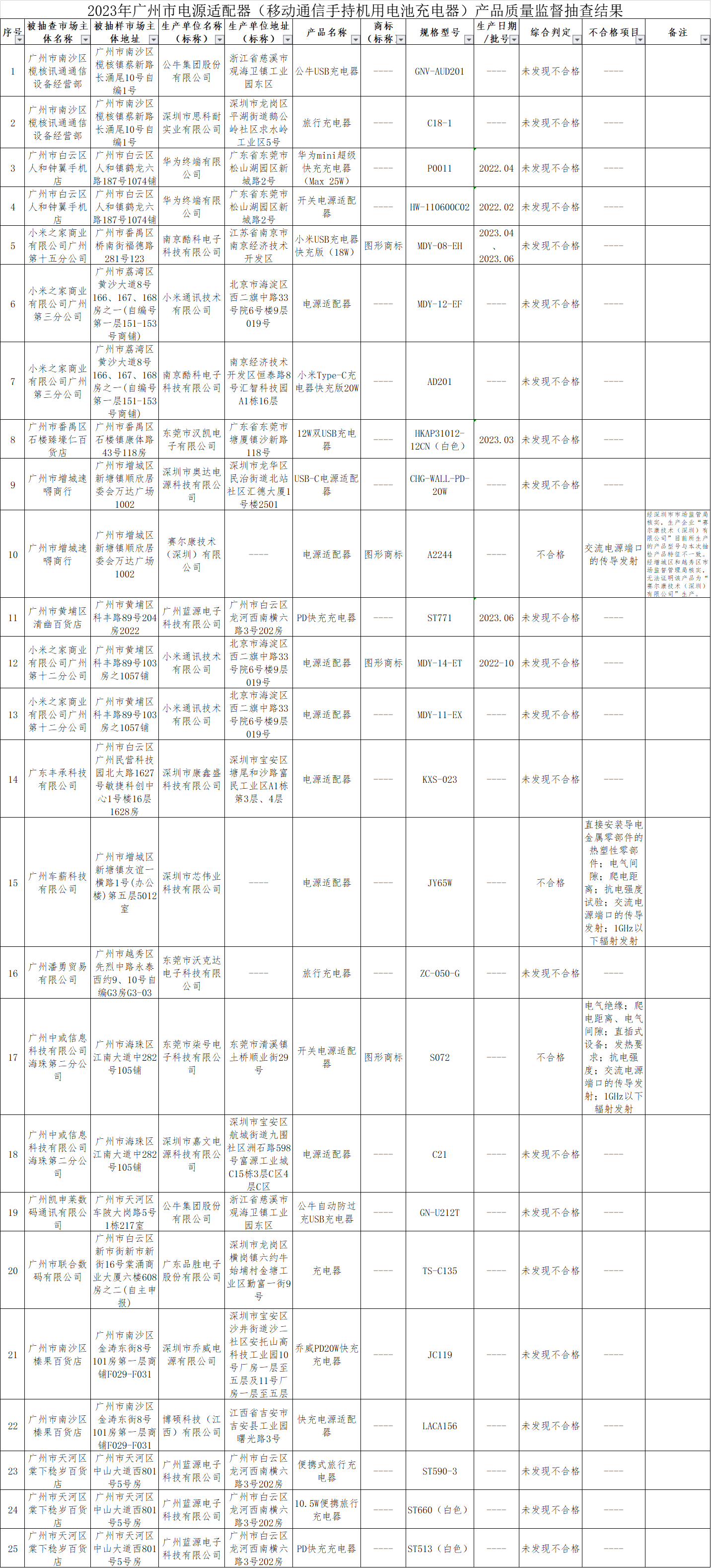 附件:2023年廣州市電源適配器(移動通信手持機用電池充電器)產品質量監督抽查結果.png
