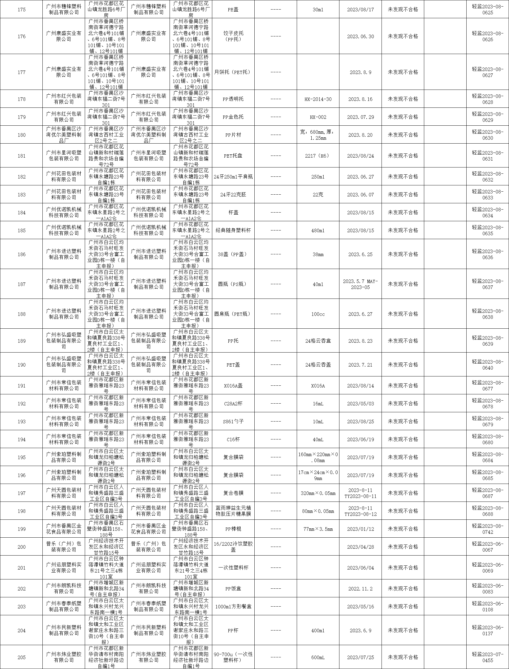 2023年第三季度,廣州市市場監督管理局對塑料材質食品相關產品(不含塑料奶瓶)產品質量進行了監督抽查,共抽查了205批次樣品,經檢驗,全部產品均符合標準要求。