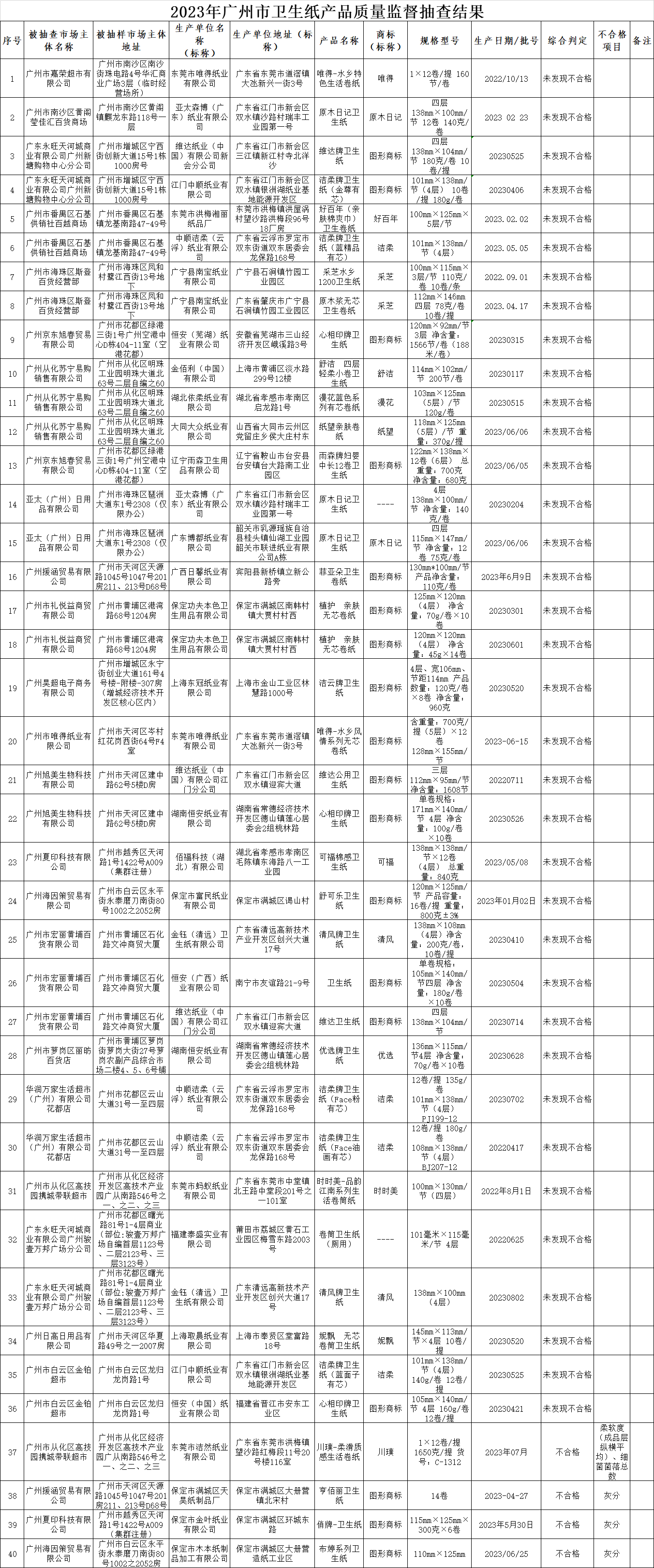 附件:2023年廣州市衛(wèi)生紙產(chǎn)品質(zhì)量監(jiān)督抽查結(jié)果.png