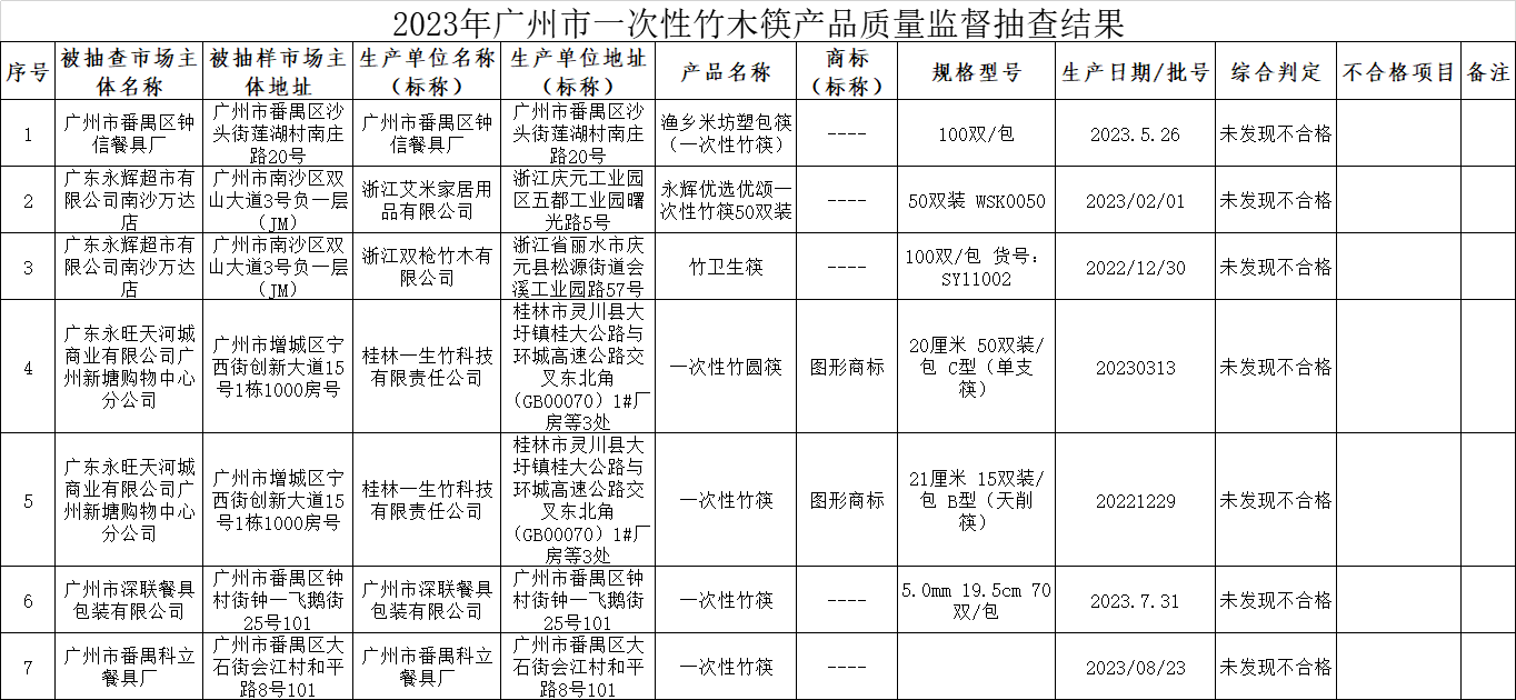 附件:2023年廣州市一次性竹木筷產(chǎn)品質(zhì)量監(jiān)督抽查結(jié)果.png