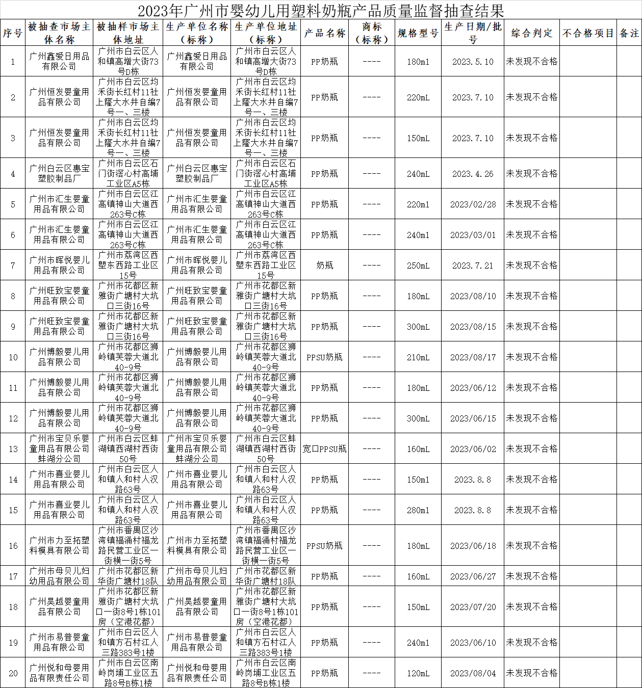 附件:2023年廣州市嬰幼兒用塑料奶瓶產(chǎn)品質(zhì)量監(jiān)督抽查結(jié)果.png