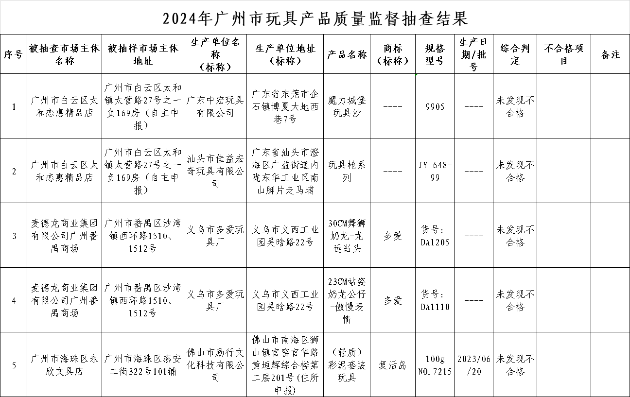 2024年第1季度,廣州市市場監督管理局對玩具產品質量進行了專項監督抽查,共抽查了5批次產品,經檢驗,全部產品符合標準要求。