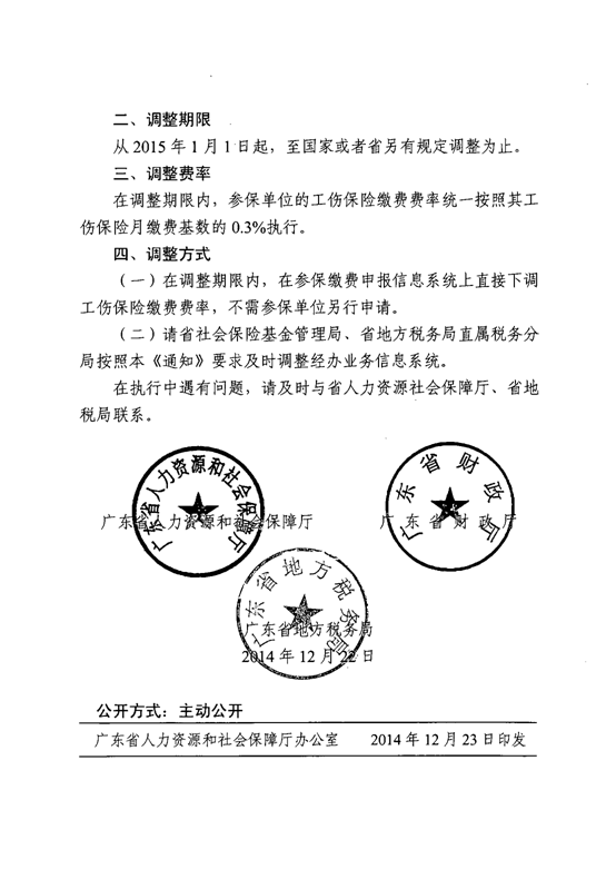 關(guān)于階段調(diào)整省本級統(tǒng)籌參保單位工傷保險(xiǎn)繳費(fèi)費(fèi)率的通知----粵人社發(fā)〔2014〕249號