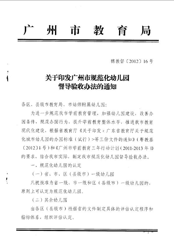 關(guān)于印發(fā)廣州市規(guī)范化幼兒園督導(dǎo)驗(yàn)收辦法的通知