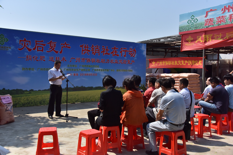 9月30日上午,市供銷總社在番禺區(qū)禺鋒蔬菜種植專業(yè)合作社種植基地舉辦“廣州市供銷社農(nóng)業(yè)救災(zāi)復(fù)產(chǎn)現(xiàn)場(chǎng)會(huì)”。市供銷總社袁建華副巡視員出席活動(dòng)并講話,市供銷總社相關(guān)業(yè)務(wù)處室和番禺區(qū)、南沙區(qū)、白云區(qū)部分農(nóng)民專業(yè)合作社代表和供銷合作社干部職工參加活動(dòng)。活動(dòng)邀請(qǐng)了市農(nóng)業(yè)技術(shù)推廣中心專家舉辦講座,介紹災(zāi)后復(fù)產(chǎn)技術(shù)和科學(xué)用肥用藥技術(shù),并向此前受強(qiáng)臺(tái)風(fēng)“山竹”負(fù)面影響的農(nóng)民專業(yè)合作社捐贈(zèng)化肥100噸,價(jià)值30多萬(wàn)元。