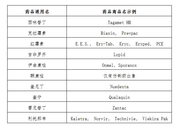 可能會與洛派丁胺發(fā)生相互作用的藥品示例