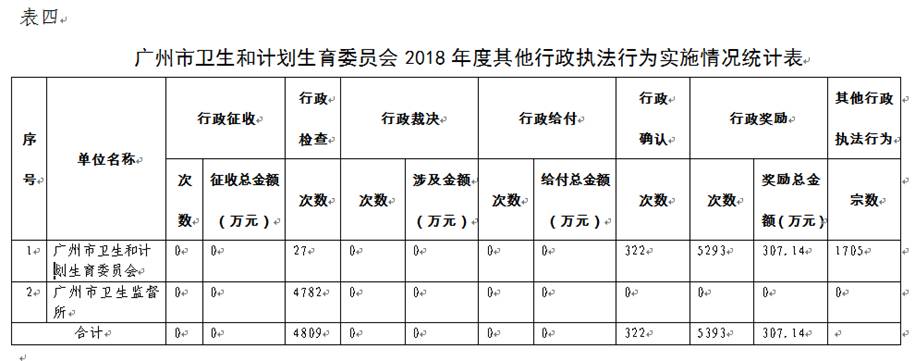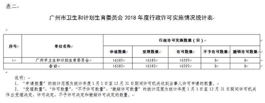 第二部分 廣州市衛生和計劃生育委員會2018年度行政執法數據表